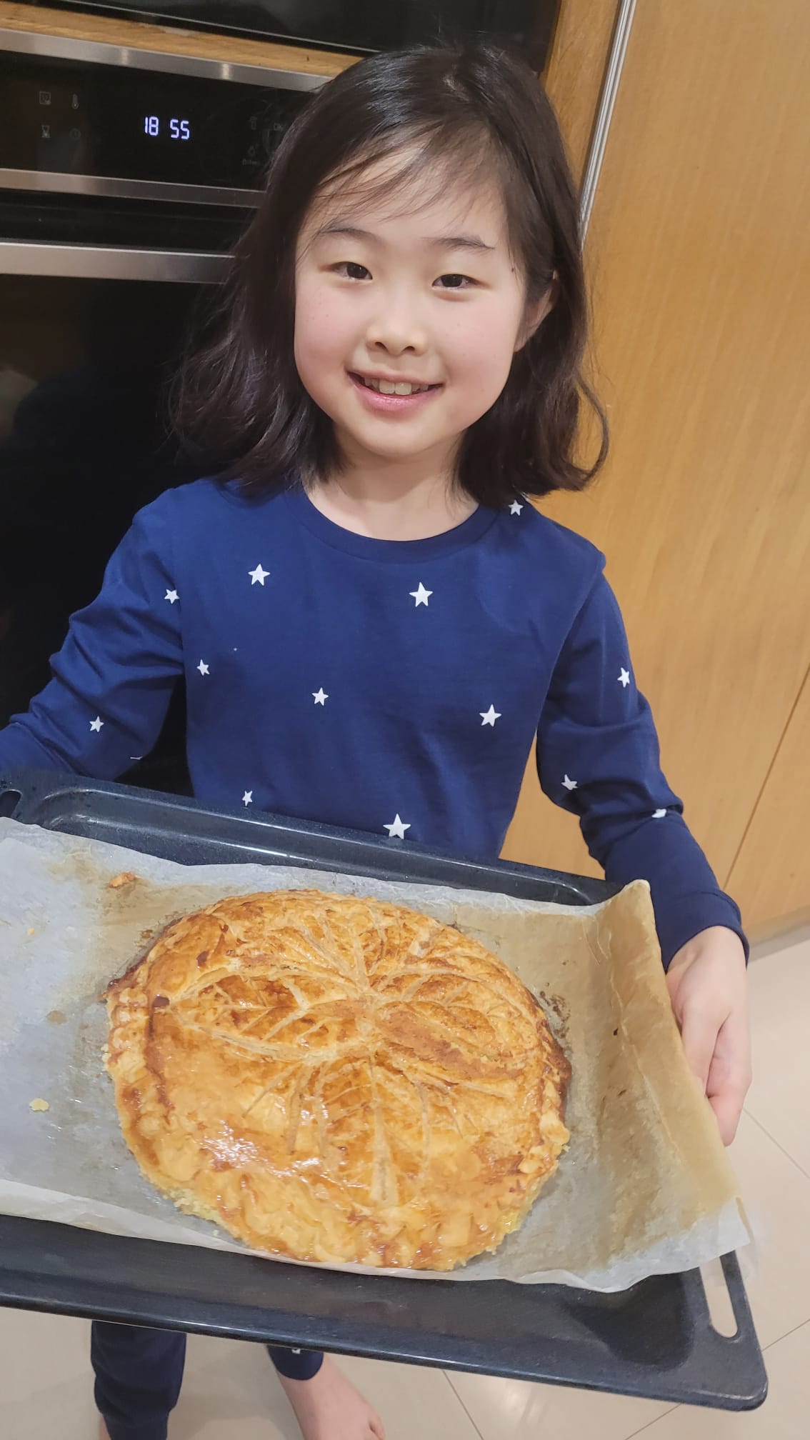 In our French lessons, we have been learning about ‘La Fête des Rois’ (Epiphany). Traditionally, this day is celebrated with an almond cake (‘la galette des Rois’) which has a charm hidden inside called a ‘fève’. The person who finds the charm in their slice is named king or queen for the day. Suri and Imogen had fun making (and eating!) the cake at home.