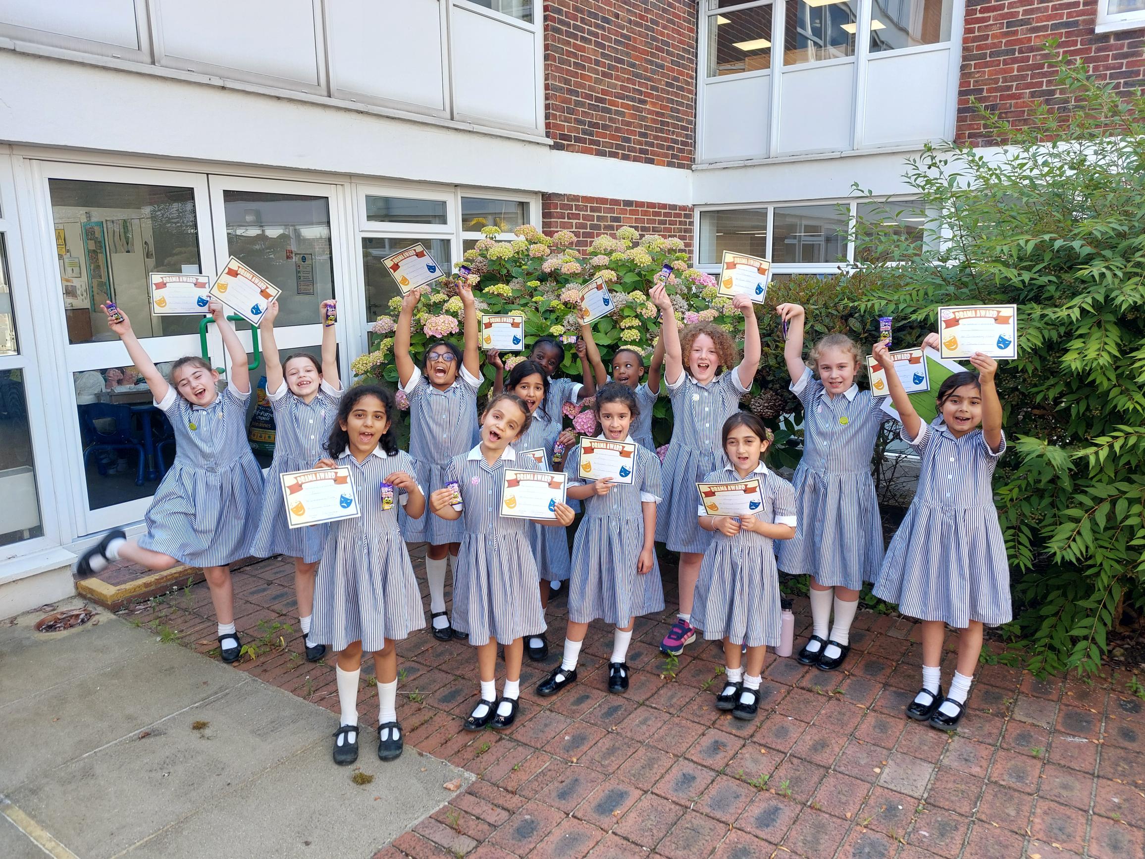 The Year 2 Drama Club, run by Mrs Connery, had their final session on Monday, and due to the LAMDA exams being held in the drama studio, they took their amazing (and adaptable) acting skills outside. They had been looking at scripts, and they performed excerpts from Town Mouse and Country Mouse, thinking carefully about the direction and how the projection of their voices outside was important. They were presented with well-deserved certificates of achievement as it was the last club before the end of term.