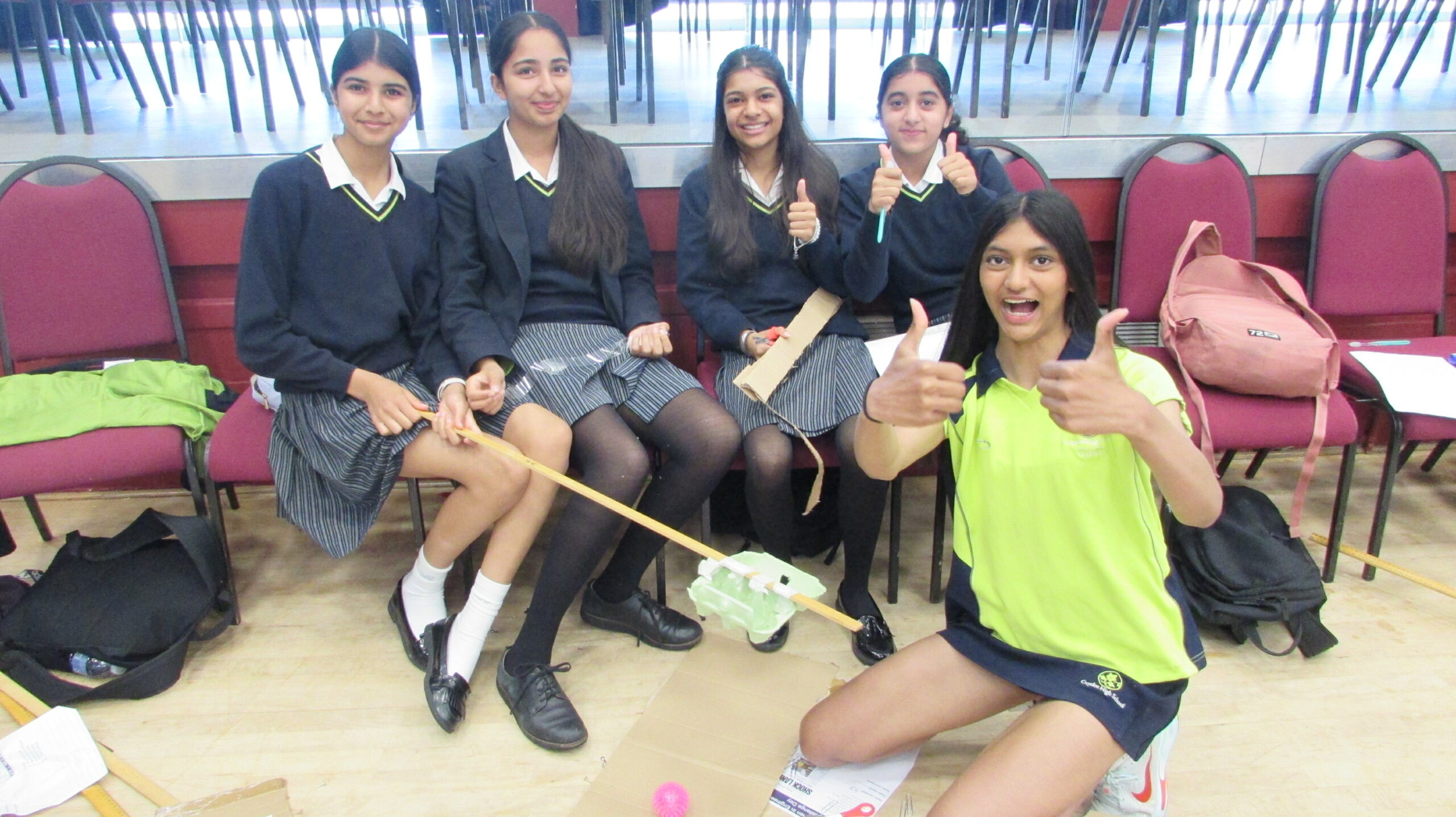 The brief was to engineer a way to move an object, a “radioactive meteorite”, 2 metres while all humans remain 1 metre away. The meteorite must also not be dropped! Our challenge saw the invention of innovative systems and products. It was fantastic to see how the Year 8s worked together, used their imagination and made their ideas a reality.