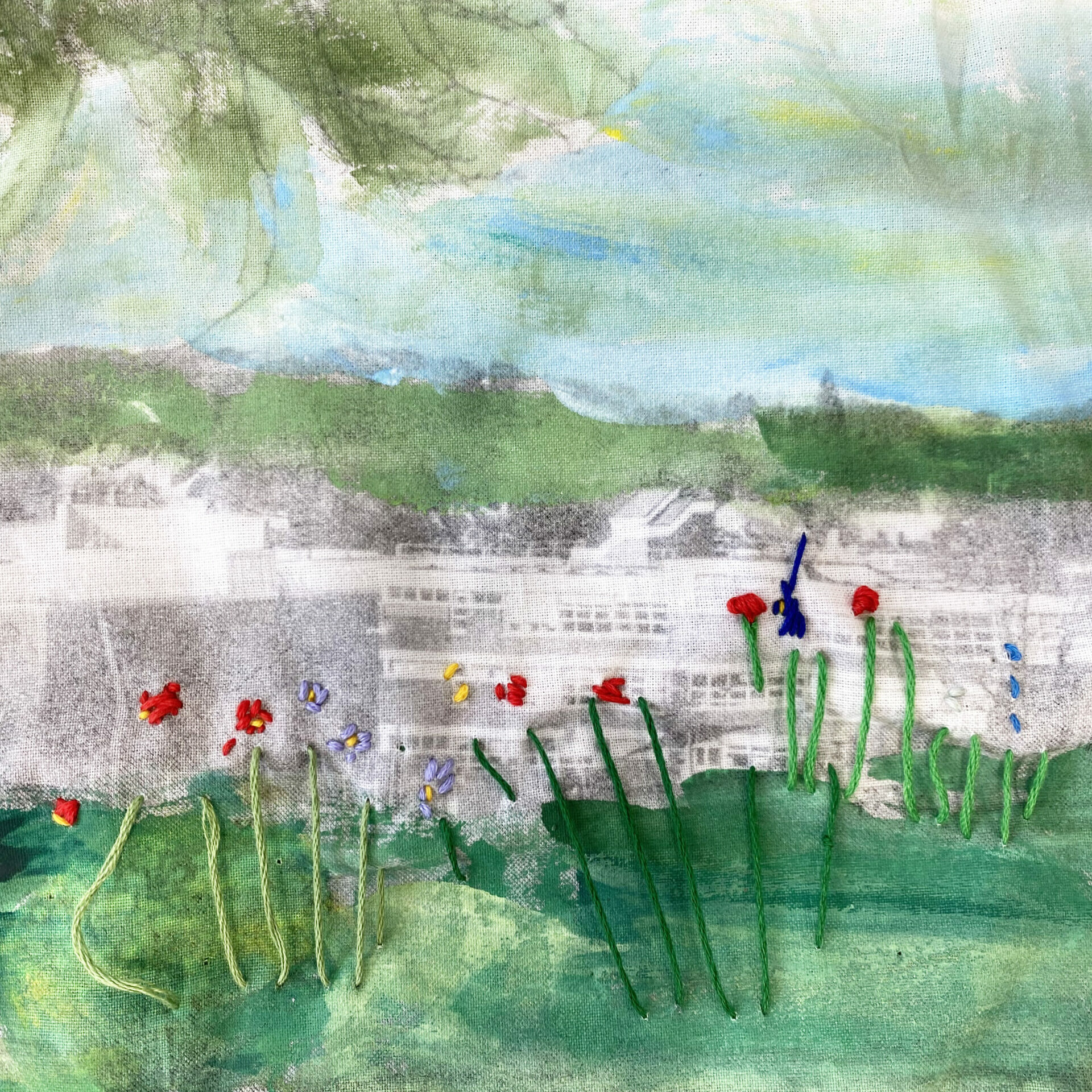 Junior Work of the Week: Isabel U, 4DJ, Year 4 Cloth, Thread, Paint – exploring rewilding.