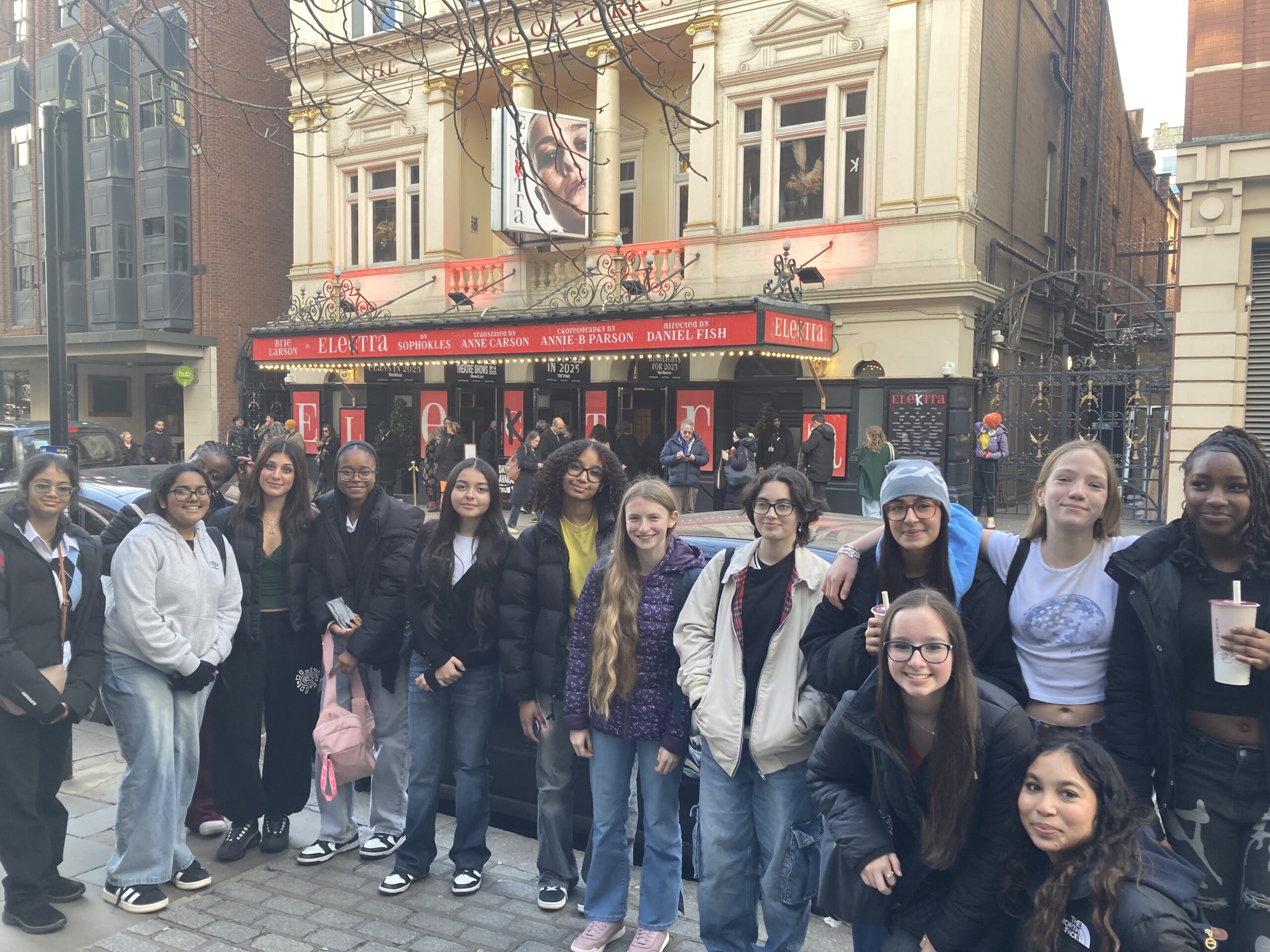 After soaking up all that history, we made our way to the Duke of York’s Theatre for a performance of Elektra. And wow—what a show! The story follows Elektra and Orestes, two siblings, out for revenge against their mother after she murders their father, Agamemnon (classic Greek family drama, right?). This version had a fresh, modern twist that made the tragedy feel even more intense—and yes, there were moments when we were completely on the edge of our seats!